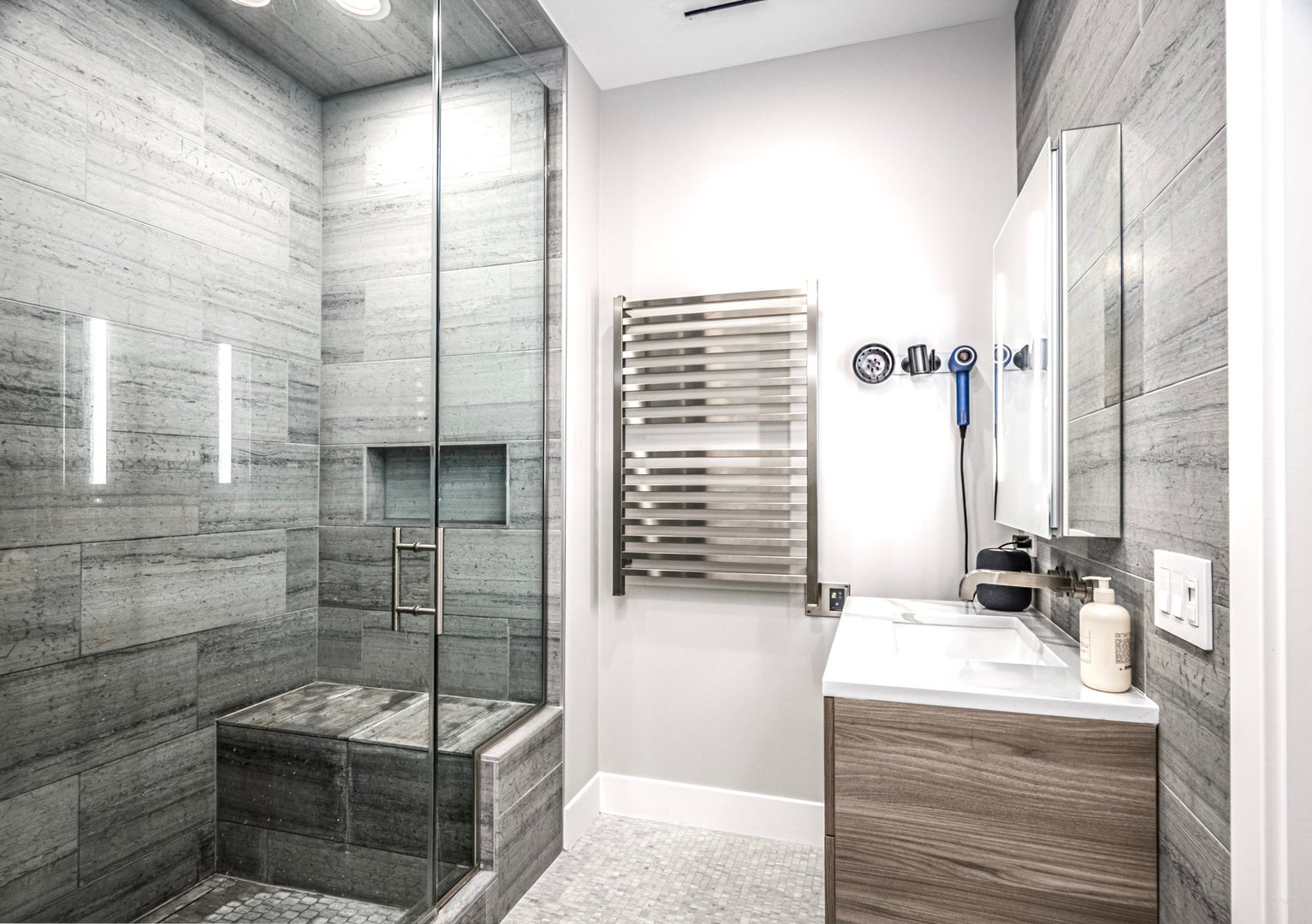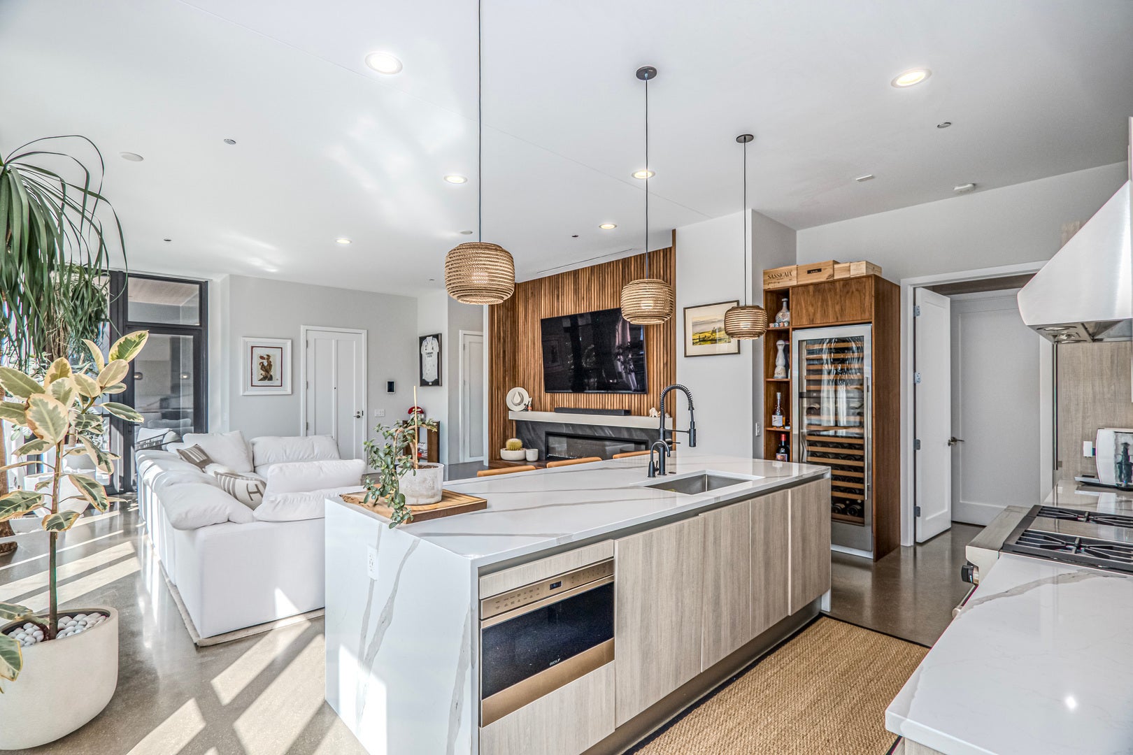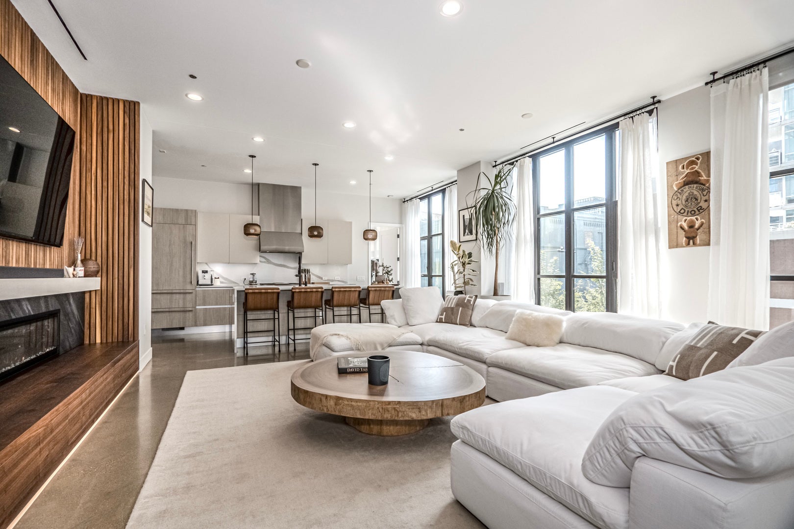 Refined elegance meets modern sophistication in this bespoke 2-bedroom, 2.1-bath residence at 900 West Washington, one of the West Loop's most exclusive LEED Gold-certified boutique buildings. A private elevator opens into a gracious foyer, where soaring 10'6" ceilings, radiant-heated polished concrete floors, and expansive sound-insulated windows with custom automated blinds set the tone for sophisticated living. The open-concept living and dining areas are anchored by a meticulously designed fireplace and flow seamlessly to a private terrace with recessed lighting and a gas line-perfect for year-round entertaining. At the heart of the home, the chef's kitchen blends form and function with custom Italian Scavolini cabinetry, Sub-Zero and Wolf appliances, a dramatic 10-foot quartz waterfall island, and a custom wine refrigerator. The primary suite is a private retreat, enhanced by bespoke wall detailing and integrated nightstands that echo the fireplace design. A custom walk-in closet leads to the spa-inspired bath, featuring dual floating vanities, Hansgrohe/Axor fixtures, a frameless glass shower, heated towel bars, and an illuminated Robern mirror. The second bedroom offers its own en suite bath with a sleek glass shower and generous closet space. Additional highlights include a full-size laundry room with LG washer/dryer and custom storage, Nest thermostat, radiant-heated sidewalks. The residence includes garage parking with a private car lift. With only 22 architecturally significant homes, 900 West Washington offers unmatched exclusivity and convenience-just steps from Fulton Market, Michelin-starred dining, designer boutiques, SoHo House, and Mary Bartelme Park.