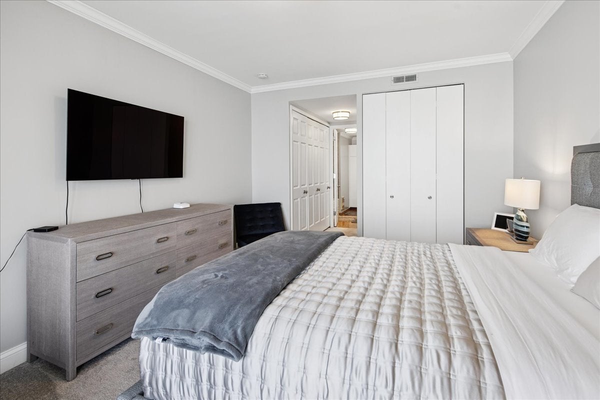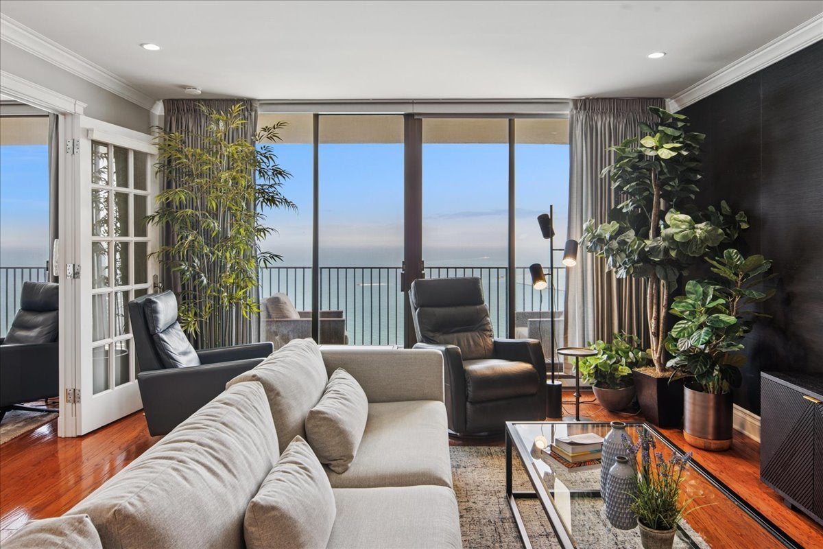 Experience spectacular city living in this Gold Coast penthouse with sweeping skyline views! Each generously sized bedroom offers abundant closet space and captivating lake vistas. The open-concept layout, complemented by 8'10" foot ceilings, fills the home with natural light from every angle. Notable features include ample in-unit storage, a laundry area conveniently located off the kitchen, and a separate storage locker included in the price. The true showstopper is the expansive 40-foot private balcony - ideal for soaking in the Air and Water Show, Navy Pier fireworks, and all the vibrant energy of the city. Residents enjoy a full suite of building amenities - 24-hour door staff, indoor pool, fitness center, sauna, sun deck, and party room.