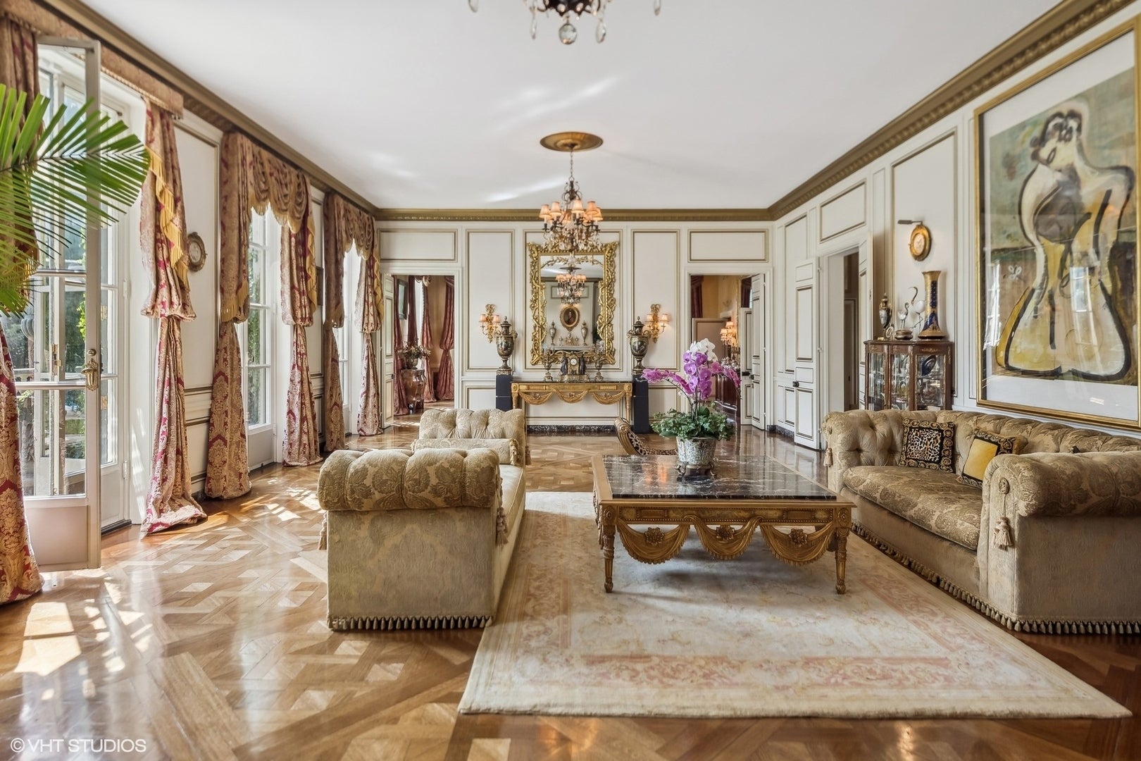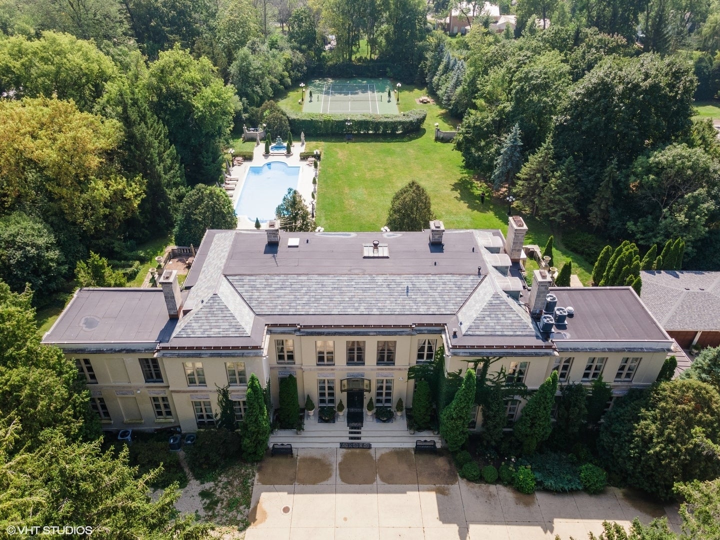 Introducing "The Adler," a magnificent French country estate, set on over two acres of breathtaking grounds in Lake Forest. Built by renowned architect David Adler in 1914, this 11,000 sq ft estate embodies timeless elegance. The property features an incredible grand foyer, parlor, library, media room, and an elegant kitchen with an additional service kitchen. With eight spacious bedrooms and ten bathrooms, this home is the epitome of sophistication and grandeur. Inside, you'll find grand chandeliers, ornate moldings, 11-foot ceilings, herringbone parquet floors, and custom marble throughout. The home also boasts luxurious 24kt gold Sherle Wagner bathroom fixtures, adding an extra layer of refinement. This French country-style estate offers resort-like amenities, including a swimming pool, spa, tennis court, and formal gardens. Owned by only four families throughout its history, the property retains a rich legacy and unmatched allure. The living room and dining room overlook the lush gardens, while the library, with its paneled walls, provides a secluded retreat for work or relaxation. The second floor hosts all eight bedrooms on one level, while the third floor offers an entertaining space complete with a "speakeasy" bar, dance room, sauna, and full bath. For car enthusiasts, The Adler features a three-car garage. Surrounded by mature trees and lush landscaping, this estate offers the ultimate in privacy and serenity. "The Adler" is truly a masterpiece of architectural design and historical significance in Lake Forest.